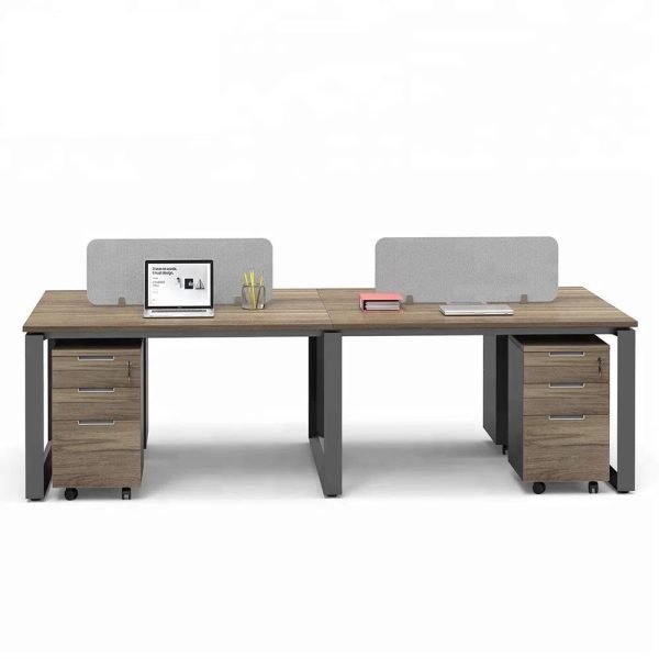 Modern 4-Person Office Workstation Desk with Privacy Panel and Drawer Units
