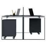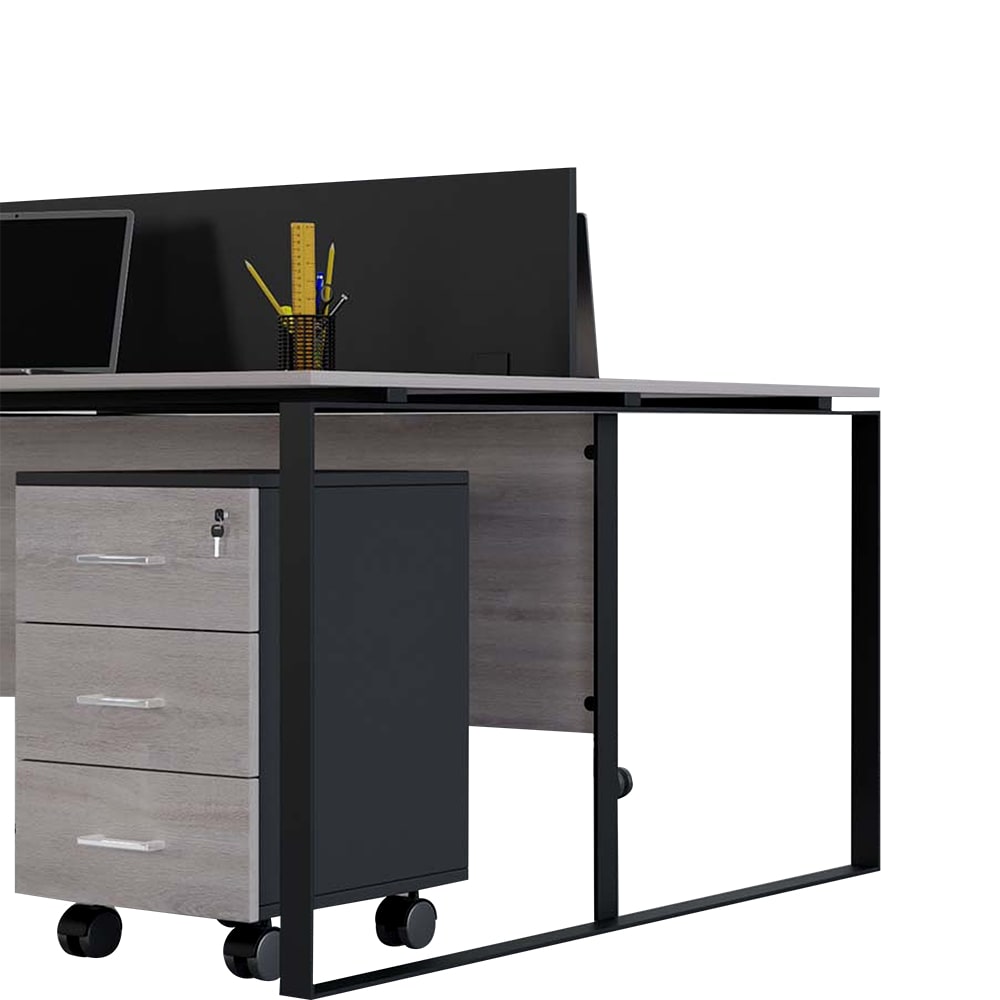 This workstation is perfect for companies looking to save space without compromising comfort or design. The central divider creates personal zones, which improve focus and reduce distractions. Moreover, the lockable mobile storage units offer convenience and flexibility.