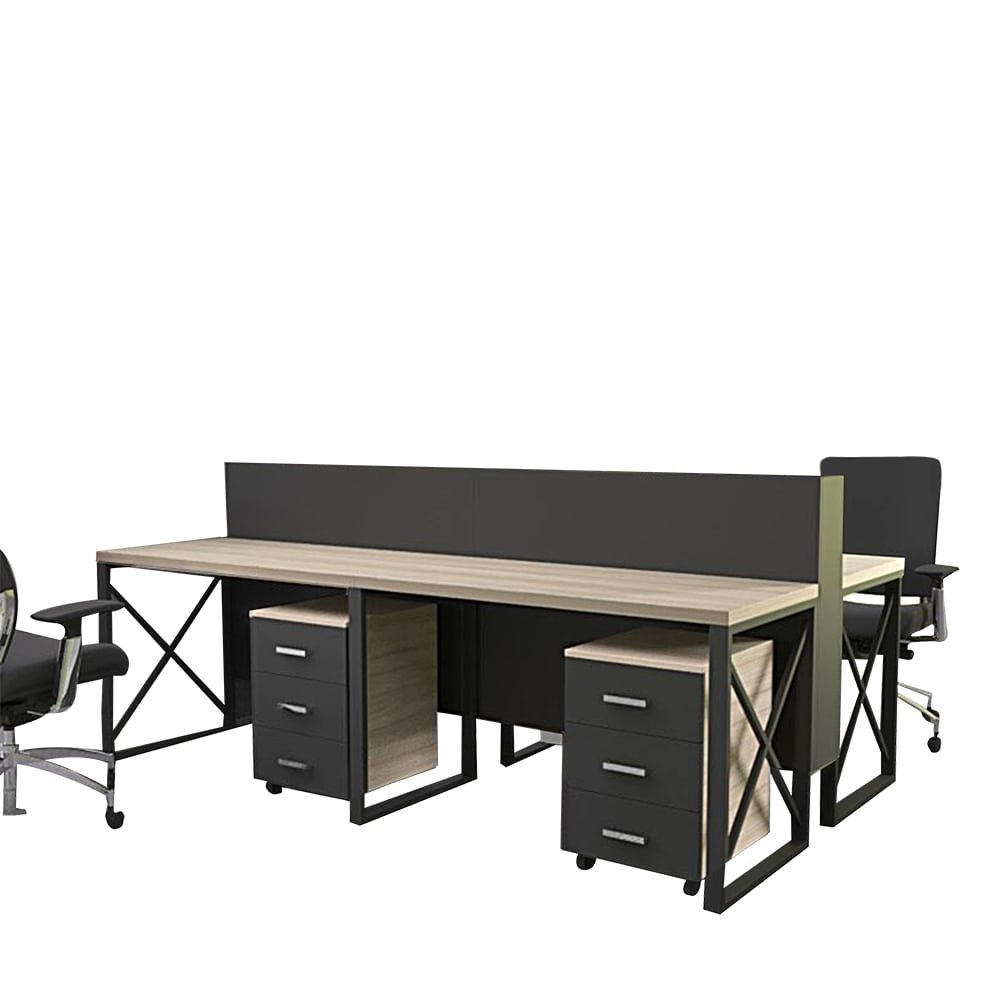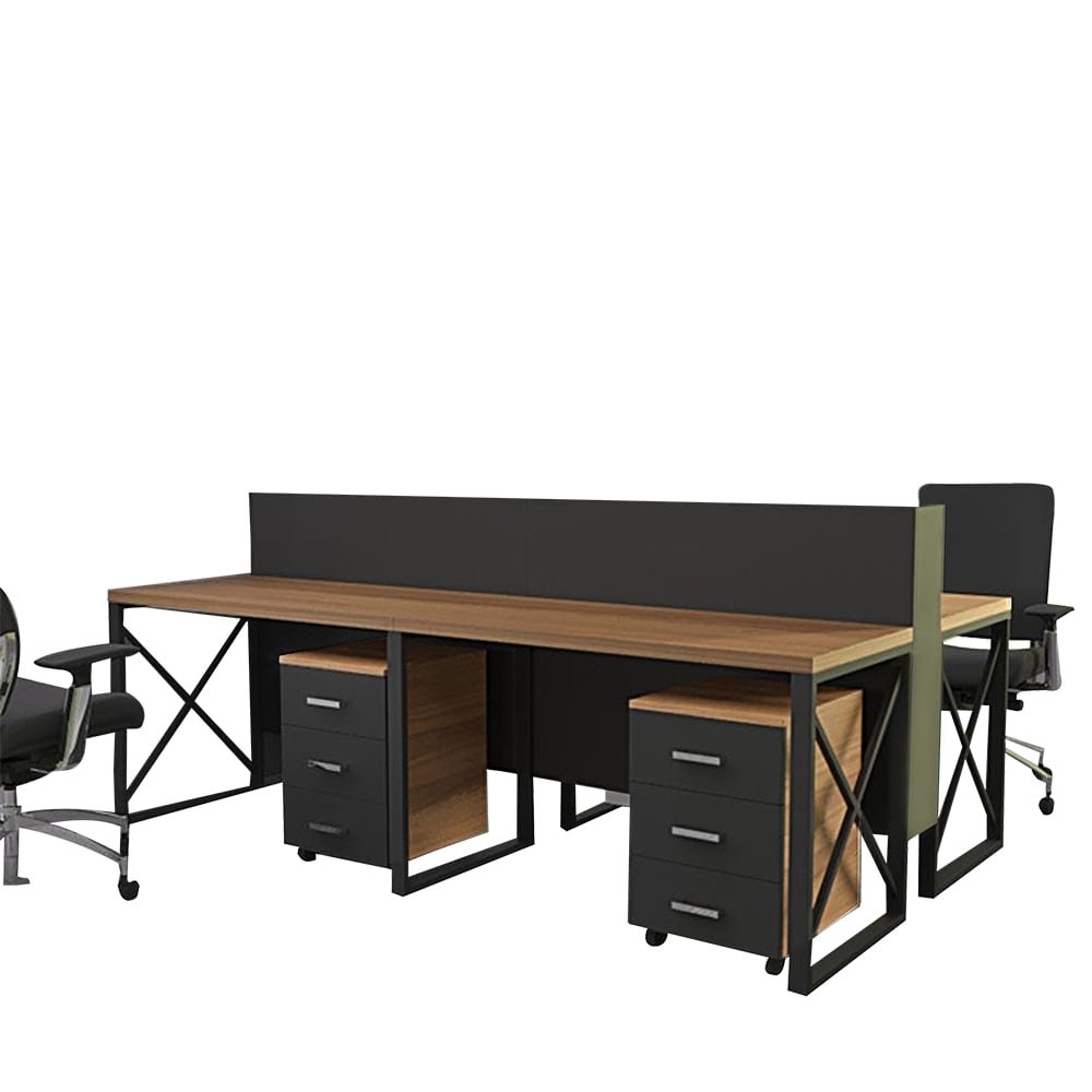 Upgrade your office workspace with this premium 4 Seater Open Workstation | UDL OWS-815, exclusively designed by “Ultimate Designs Ltd.” Featuring a sleek combination of warm wooden textures and modern black metal framing, this desk delivers both style and functionality for any professional environment.