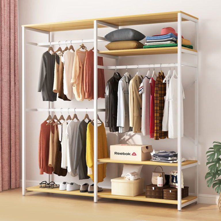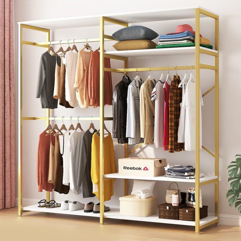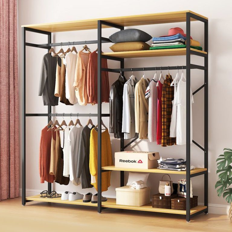 A garment clothes rack / alna, also known as a clothing rack, is a standalone structure used to store and display clothing items like shirts, dresses, jackets, and pants. These garments are hung from horizontal bars or shelves attached to a metal or wooden frame