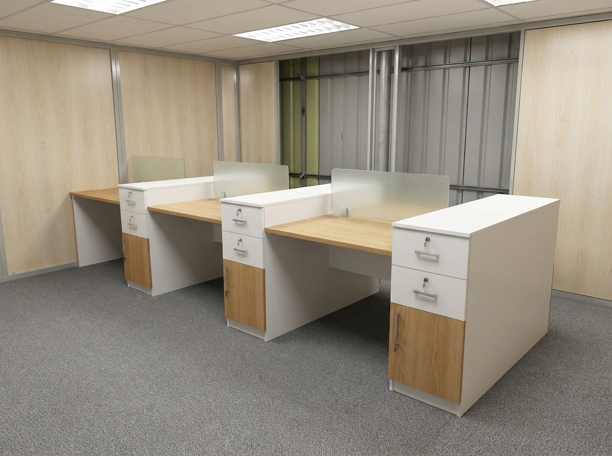 Transform your office into a hub of efficiency with our Modern Dual-Tone Modular Office Workstation. Specifically designed for the contemporary Bangladeshi workplace, this workstation combines aesthetics with high-level functionality. It features a durable light-wood desktop paired with crisp white cabinetry, offering a clean and professional look.
