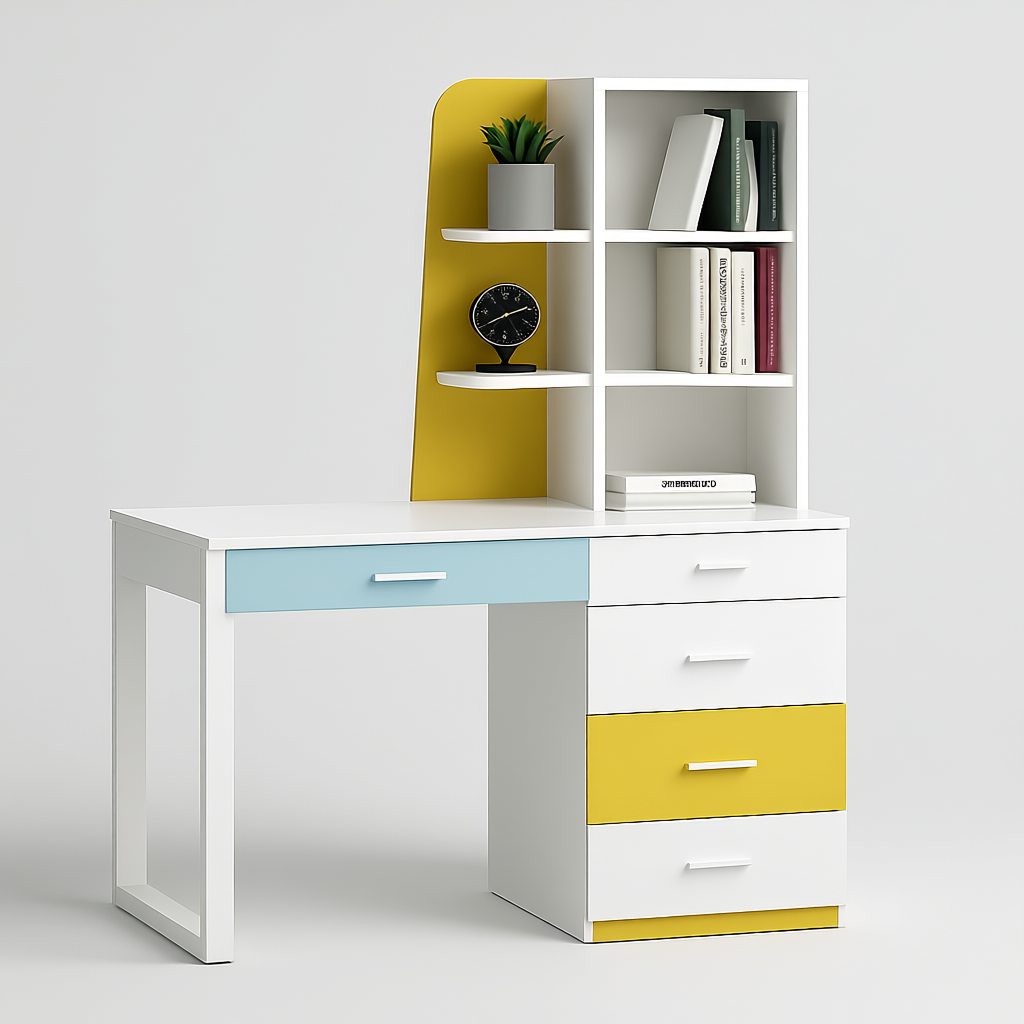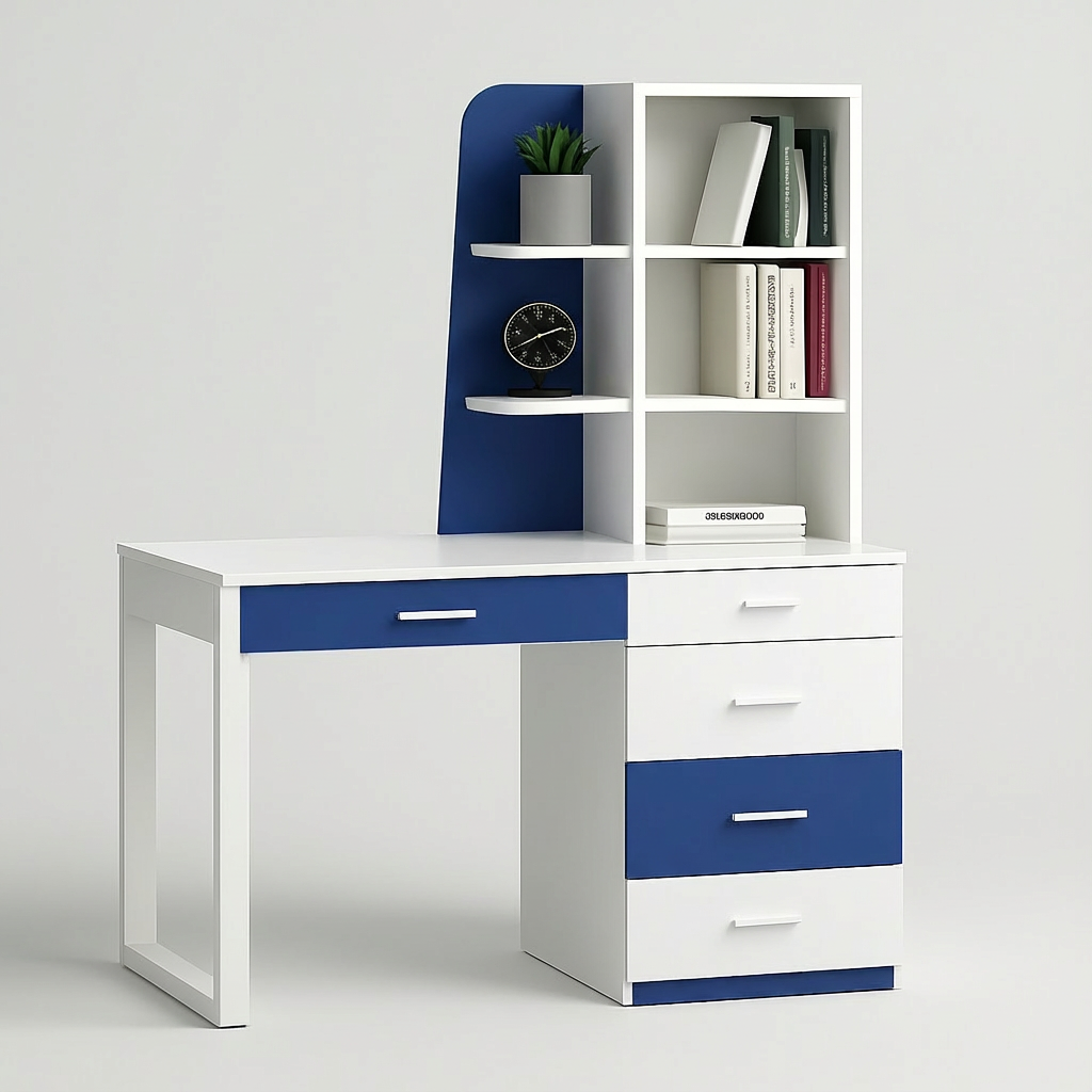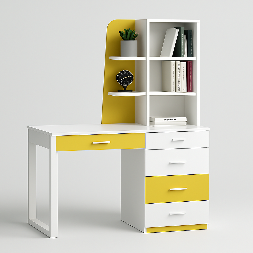 The Study Table with Bookshelf | UDL ST-12 is a versatile and modern workstation perfect for students, kids’ rooms, and home offices. Designed with multiple colour variants, including blue, yellow, black & white, and full black, it features integrated bookshelves, smooth storage drawers, and a sturdy frame for long-term use. The ergonomic design ensures comfort while studying or working, and the vibrant finishes add a touch of style to any room. Crafted by Ultimate Designs Ltd, the UDL ST-12 balances aesthetics, durability, and functionality to create an ideal study solution.